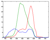 Files with an extension of .spc are ASCII files with spectrum information. In general, there will be several lines of annotation data, followed by one line per wavelength containing the wavelength (in nanometers) and the value for that wavelength. Files may contain more than one spectrum, e.g. for the RGB response curves of a camera.